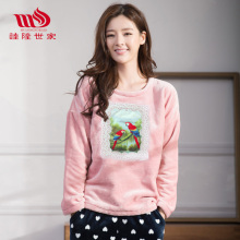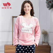 睦隆世家秋冬法兰绒可爱女人睡衣加厚保暖珊瑚绒睡衣家居服套装女