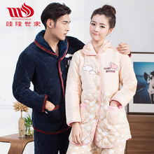 睦隆世家冬季情侣睡衣加厚珊瑚绒夹棉男女长袖家居服保暖棉袄套装