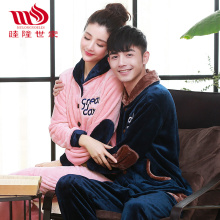 睦隆世家秋冬情侣珊瑚绒睡衣长袖法兰绒男女家居服加厚套装