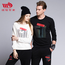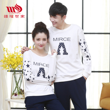睦隆世家秋季情侣简约纯棉家居服套装字母睡衣纯色秋可外穿家居服