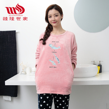 睦隆世家冬季女士加厚珊瑚绒睡衣韩版长款女甜美可外穿长袖家居服