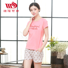 睦隆世家夏季短袖女士纯棉睡衣女夏短袖短裤睡衣可外穿家居服女