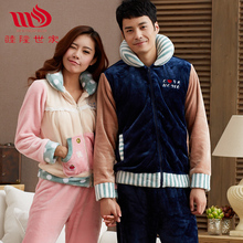 睦隆世家秋冬季加厚珊瑚绒夹棉情侣睡衣女套装卡通家居服睡衣男冬