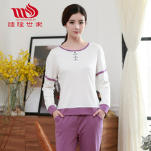 睦隆世家春秋长袖秋衣秋裤简约纯色女士家居服睡衣舒适纯棉女套装