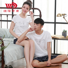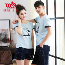 睦隆世家夏季新款休闲情侣睡衣短袖睡衣女可外穿纯棉家居服套装男