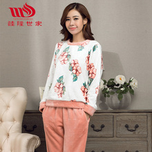 2015女人睡衣睦隆世家秋冬长袖法兰绒花朵女珊瑚绒睡衣家居服套装