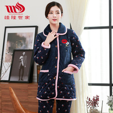 睦隆世家冬季加厚珊瑚绒夹棉睡衣女长袖棉袄冬天家居服女大码套装