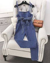AB41#高腰显瘦绑带吊带连体裤街头风修身牛仔背带裤长裤女裤子