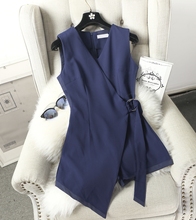 P52#2017夏季新款OL气质连衣裤不对称绑带阔腿裤一体短裤百搭女