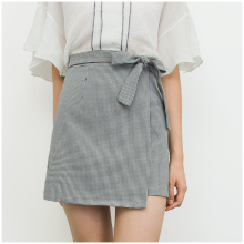 清新绑带蝴蝶结小格子不对称A字裙包裙短裙裙裤防走光半身裙女夏