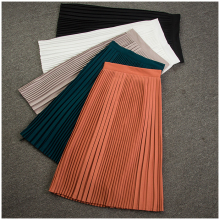 复古小清新木耳边高腰百褶裙直筒裙半身裙中长裙女显瘦春新款