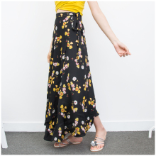 热带风情印花雪纺系带围裙大摆裙长裙夏季一片式半身裙女