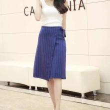 超级显瘦条纹绑带蝴蝶结不规则高腰中裙半身裙直筒裙女下装夏秋季