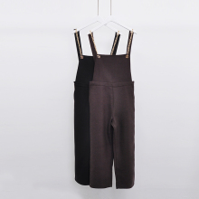 韩国定制百搭宽松显瘦金属链条背带裤九分裤毛呢料休闲阔腿裤减龄