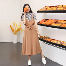 韩版宽松大码背带裤裙裤吊带裤连体裤系腰带阔腿裤九分裤女春夏新