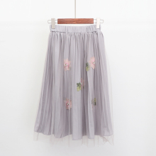 【天天特价】淑女绣花钉珠百褶纱裙公主裙中长裙刺绣半身裙女春季