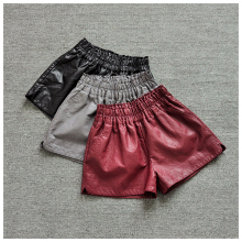2016秋冬新款欧美百搭松紧腰高腰显瘦阔腿裤PU皮短裤女靴裤仿真皮