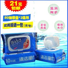 正品禾采婴儿宝宝专用手口无香柔湿巾卫生纸巾带盖80*3抽袋盖密封