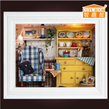 智趣屋 diy小屋迷你相框 悠闲午餐 手工木质拼装模型带灯创意礼物