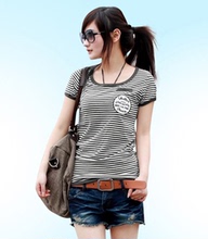 包邮大码女装长款t恤女2017夏装短袖纯棉海魂衫条纹情侣装海军风