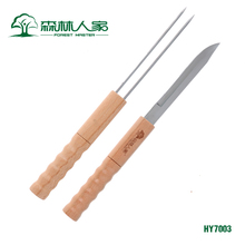 森林人家不锈钢木柄烧烤刀叉户外工具烤肉叉子用具木头刀具擀面杖