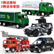 仿真合金警车消防车小汽车模型儿童玩具车特警回力车套装声光礼物