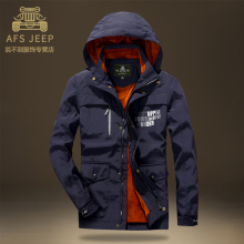 AFS JEEP秋季夹克男中长薄款宽松大码工装外套青年休闲连帽风衣潮