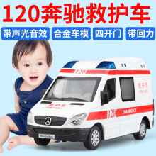 儿童120救护车玩具模型合金回力小汽车奔驰救护车警车声光可开门