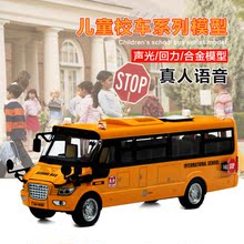 合金属模型美国校车巴士公交车模声光回力儿童玩具小铁车客运汽车