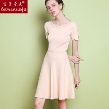 2017春夏新款露背圆领不规则短袖高腰修身显瘦收腰针织连衣裙女