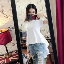 柔柔家短袖上衣女夏季2017新款 韩版 宽松燕尾百搭前短后长t恤潮