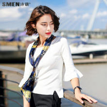 诗萌2017春装新款雪纺衫喇叭袖纯色白衬衫女韩版甜美小衫7101028