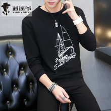 新款男士长袖t恤男款青少年T恤韩版修身型圆领卫衣打底小衫秋季潮