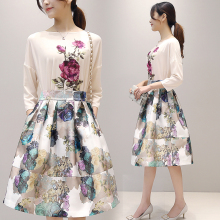 2017夏季新款女装韩版甜美圆领印花裙宽松腰套头中长款连衣裙女夏