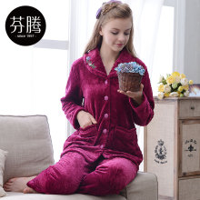 芬腾法兰绒睡衣女2016新款春秋长袖可爱加厚保暖珊瑚绒家居服套装