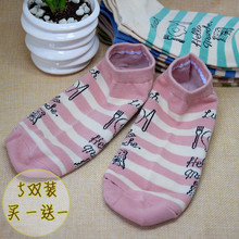 可爱女袜子 低帮棉短袜 运动女袜韩版条纹短筒四季船袜