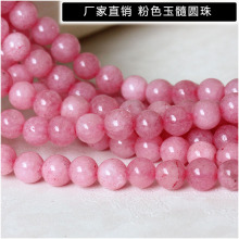 天然水晶 6mm粉色玉髓圆珠仿草莓晶散珠 diy手工制作串珠饰品材料