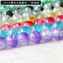 10mm双色爆花玻璃珠水晶圆珠散珠40颗 手链项链饰品配件材料热销