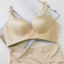 祺蕾性感纯色小胸聚拢加厚调整型内衣 刺绣薄款无钢圈女文胸套装