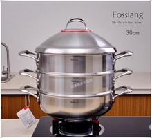 德国蒸锅304不锈钢三层加厚蒸笼3层蒸格燃气电磁炉通用30cm菲仕朗