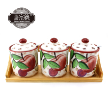 唐宗筷调味罐陶瓷调料瓶套装家用厨房调料调味盒罐附勺带盖3件装