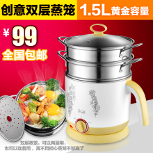 哥尔多功能电热锅电热杯电火锅小电锅煮面锅电煮锅双层蒸笼大容量