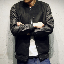 春季日系PU拼接加厚夹克男士加肥加大码胖子薄款棒球服外套潮男装