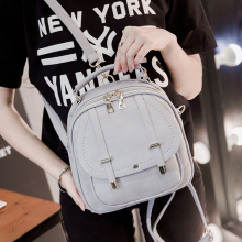 2016夏季韩版简约时尚pu皮双肩包纯色百搭休闲小背包小清新潮女包