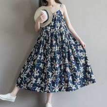 潮妈时尚韩国孕妇装春夏长裙 波西米亚碎花棉麻吊带裙大摆连衣裙