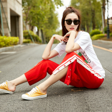 2017春夏套装新款时尚辣妈休闲孕妇装哺乳上衣托腹直筒阔腿裤潮妈