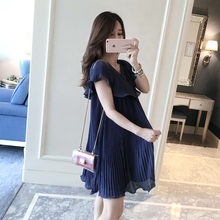 洋气孕妇夏季连衣裙中长款雪纺孕妇裙子宽松孕妇装夏装气质百褶裙