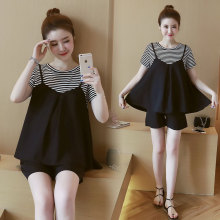 孕妇装夏季时尚孕妇套装韩版宽松大码条纹上衣托腹裤短裤两件套潮