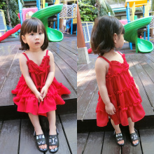 童装女童夏装2017新款儿童吊带裙子韩版女宝宝公主裙红色连衣裙潮