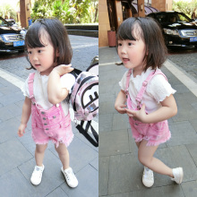 夏装2017新款女宝宝牛仔裤儿童背带裤女童裤子小童牛仔背带短裤潮